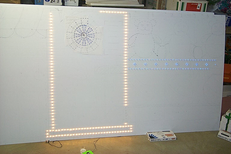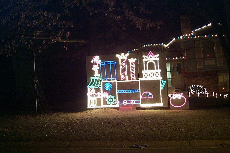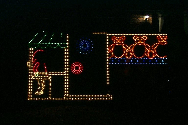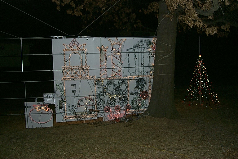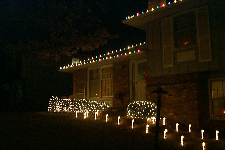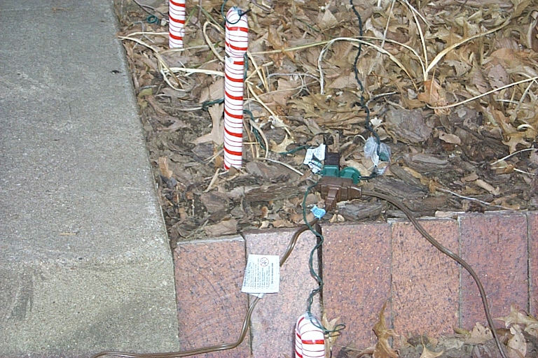 I kept the Christmas tree from 1998 but doubled the number of lights in the tree. I also added 5 sets of those net lights and placed them on the bushes in front of the house. My wife liked the idea of having something of a "Candy Cane Lane" (lighted walkway) so we purchased some candy canes and I modified them to be lit.