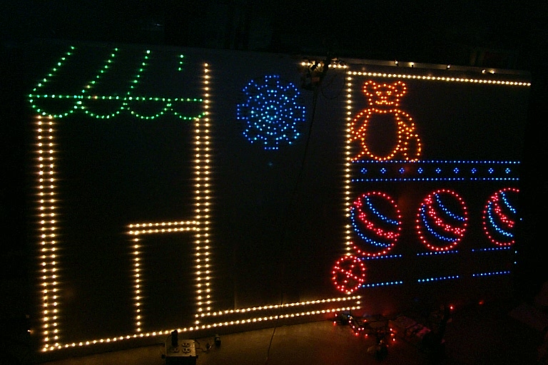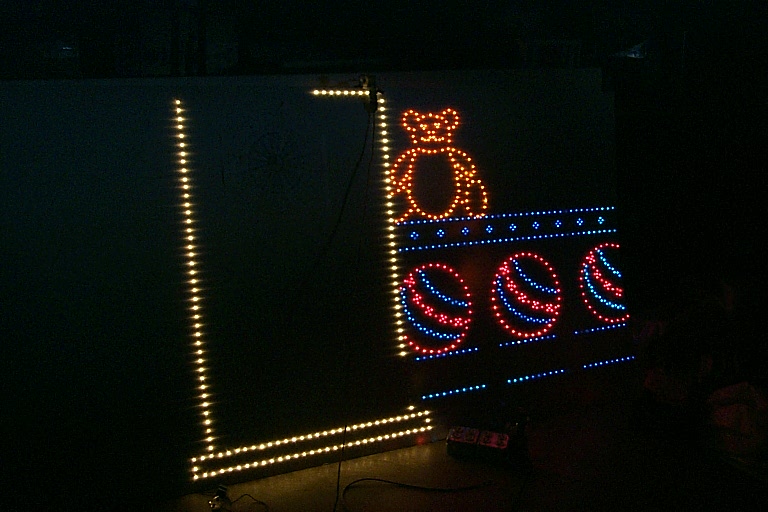 Yes I did a small display at work so the people who couldn't make it to my house to see the display could understand (kind of) what I could do with a computer and some lights. It was twelve red 20 light sets arranged in a circle. I made them twirl, bounce back and forth, do a build pattern, etc. Some of my co-workers wanted to make some patterns of their own so I let them. They thought it was pretty neat. I did it for a decorating contest that our department had. I didn't win anything. I guess it wasn't "fluffy" enough. But it was the most *technical*!